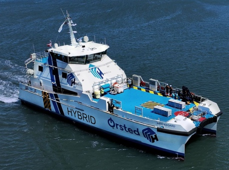 丹麥高性能混動風電運維船,代表著沃爾沃遍達在混動市場的推廣情況及對未來清潔能源解決方案的展望。船舶為混動電力推進,船上安裝了四臺IPS30推進器, 兩臺D13-700推進主機,5臺D8發電機組以及一臺D5發電機組。此設計方案在重量,空間占用及節能減排方面均有明顯優勢,有利于海上風電行業環保性和燃油經濟性。
